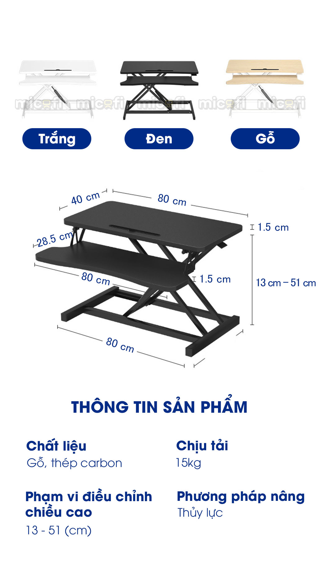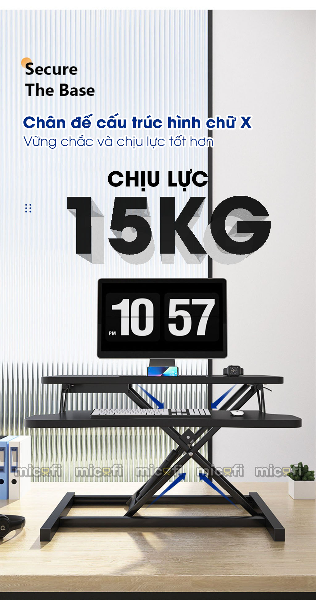 3. Bàn nâng được thiết kế với cấu trúc ổn định, chắc chắn. Chịu tải lên đến 15 kg.