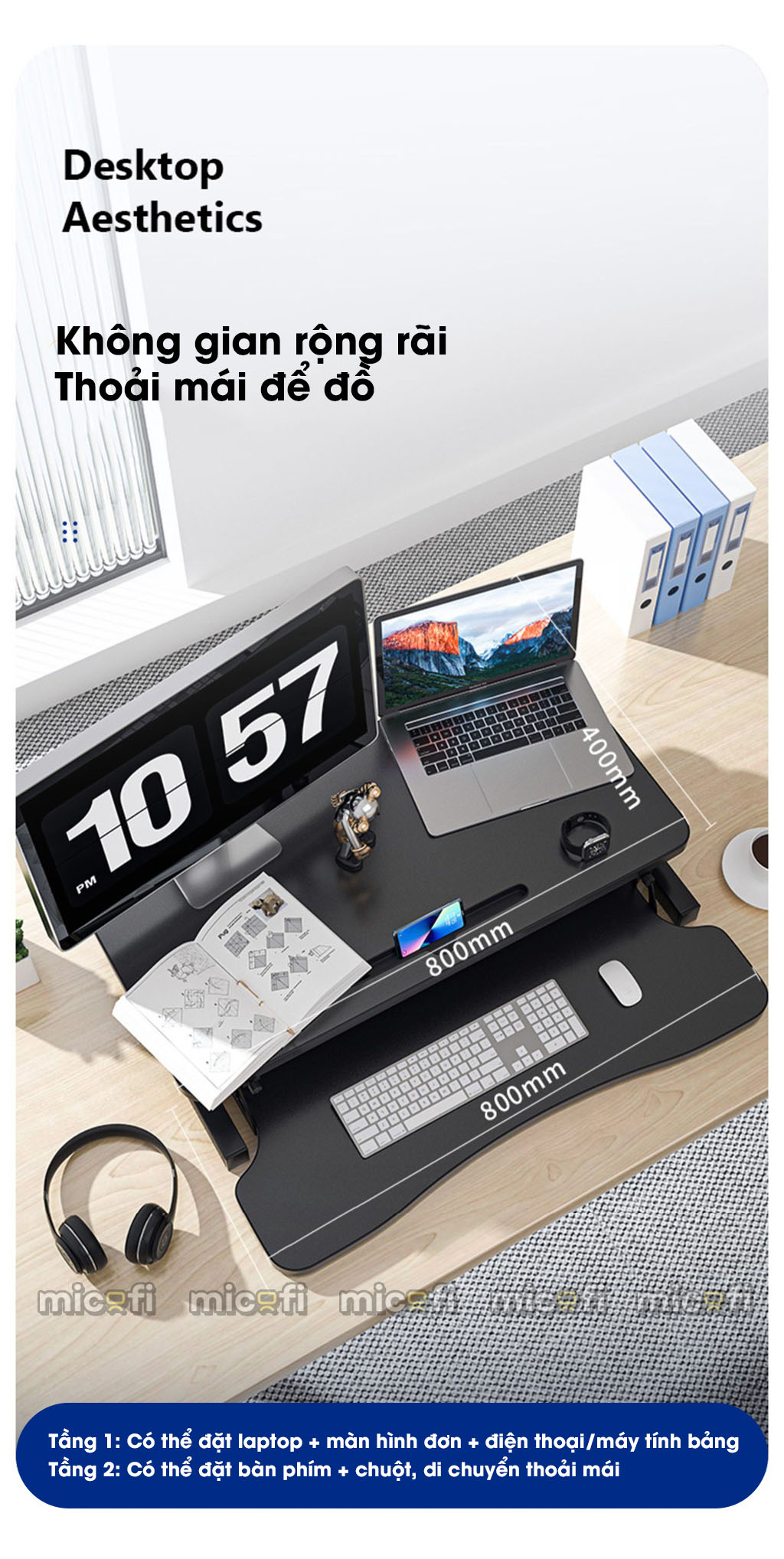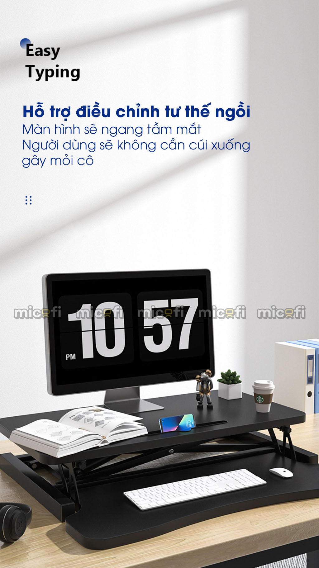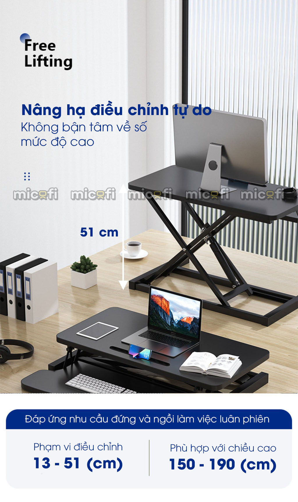 1. Điều chỉnh độ cao linh hoạt phù hợp cả khi đứng lẫn ngồi giúp giảm đau mỏi ở cột sống và cổ.
