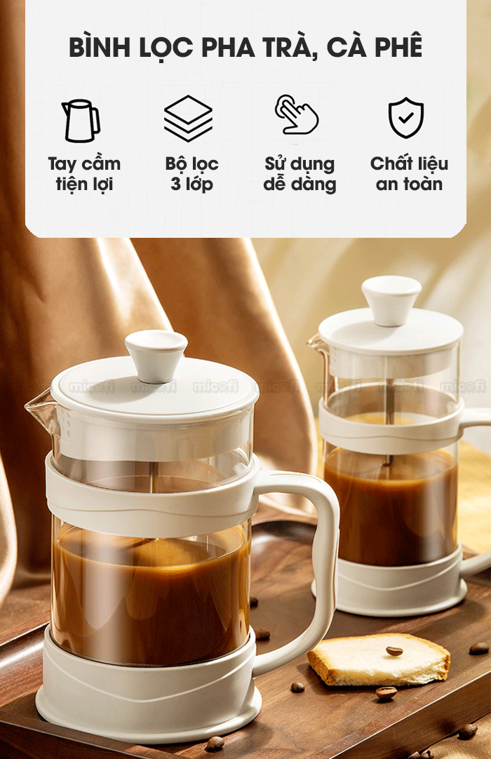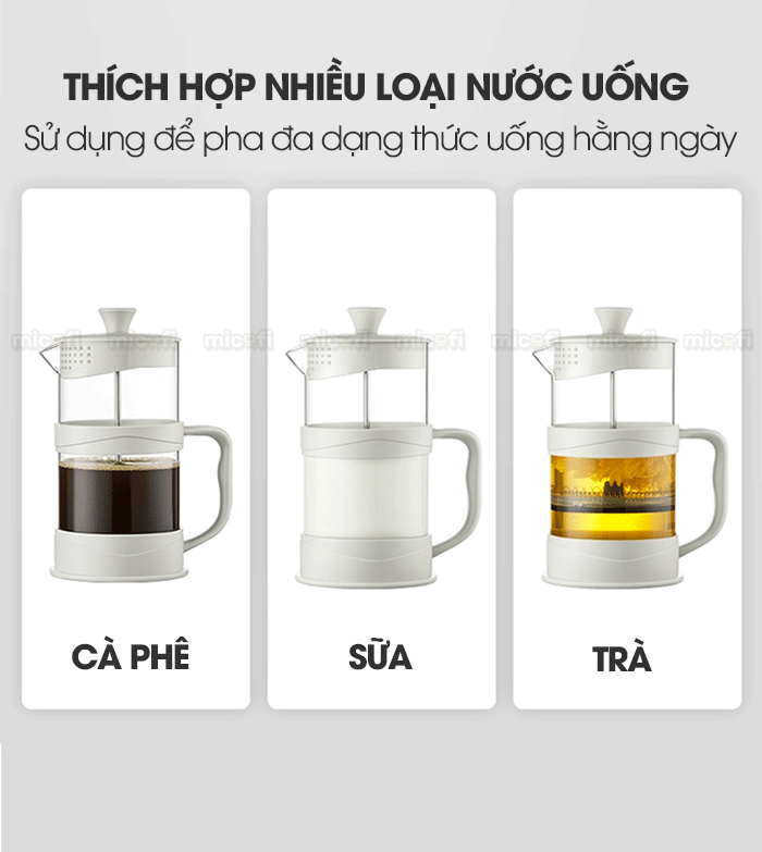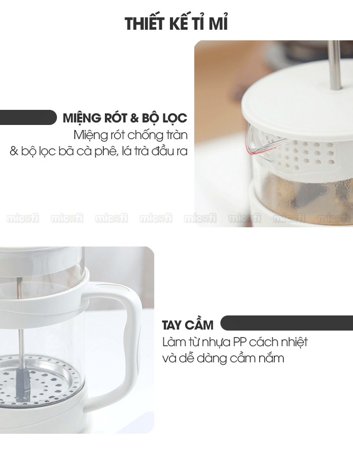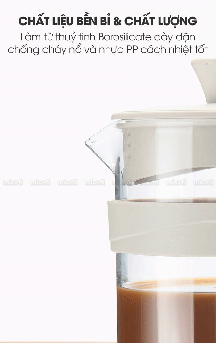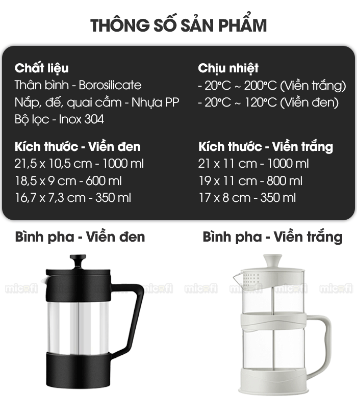 - Chất liệu: Thuỷ tinh Borosilicate, Inox 304, Nhựa PP