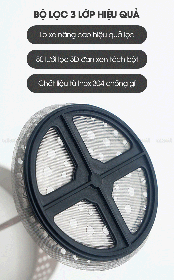 Bước 3: Đậy nắp, kéo nút lọc và đợi từ 3 - 4 phút