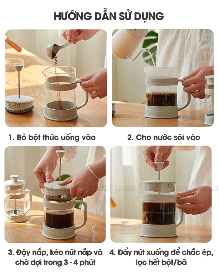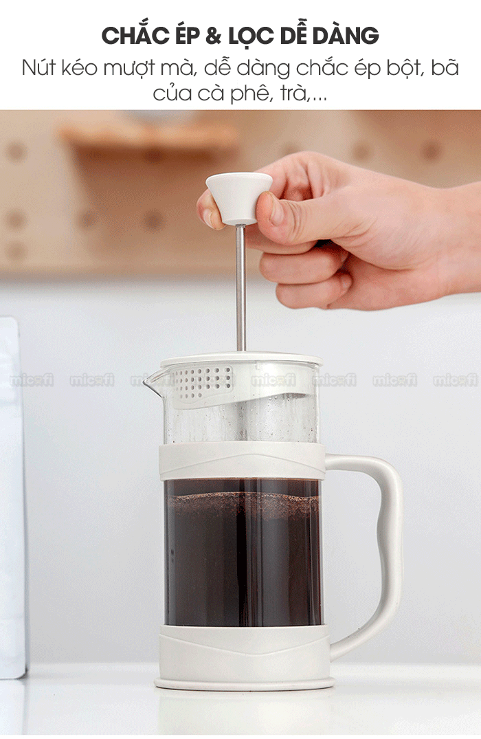 Bước 4: Đẩy nút xuống để chắc ép và lọc bã/lá thức uống