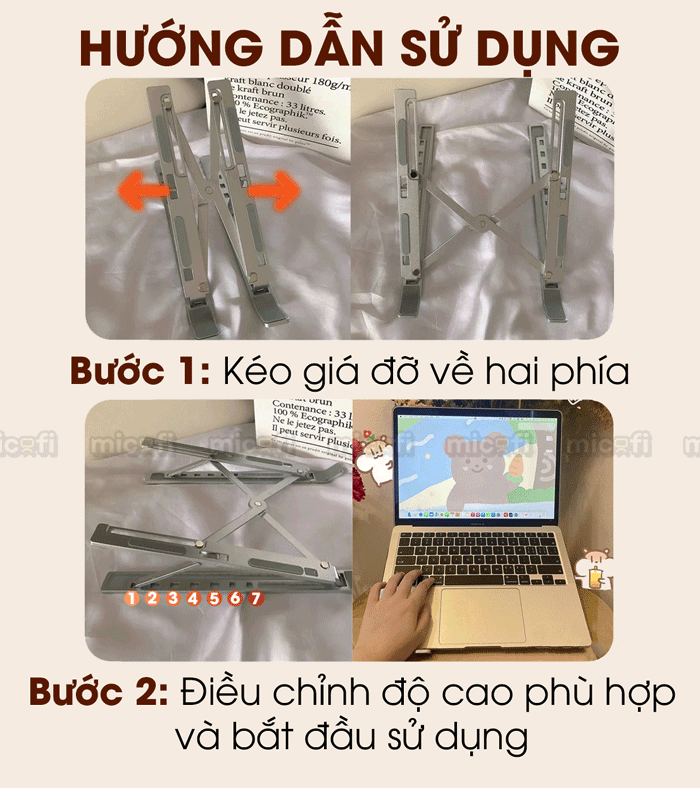 - Công dụng: Hỗ trợ kê laptop giúp bạn có tư thế ngồi và góc nhìn thoải mái hơn, hỗ trợ laptop tản nhiệt tốt hơn,...