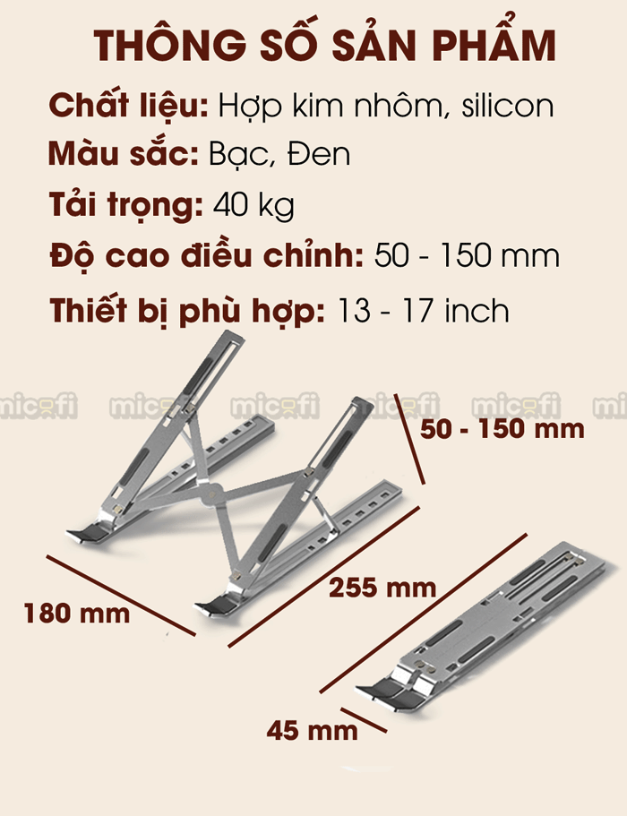- Tên sản phẩm: Giá Đỡ Laptop Hợp Kim Nhôm