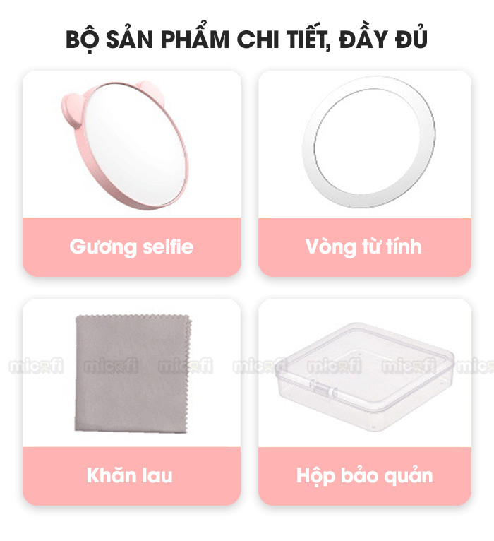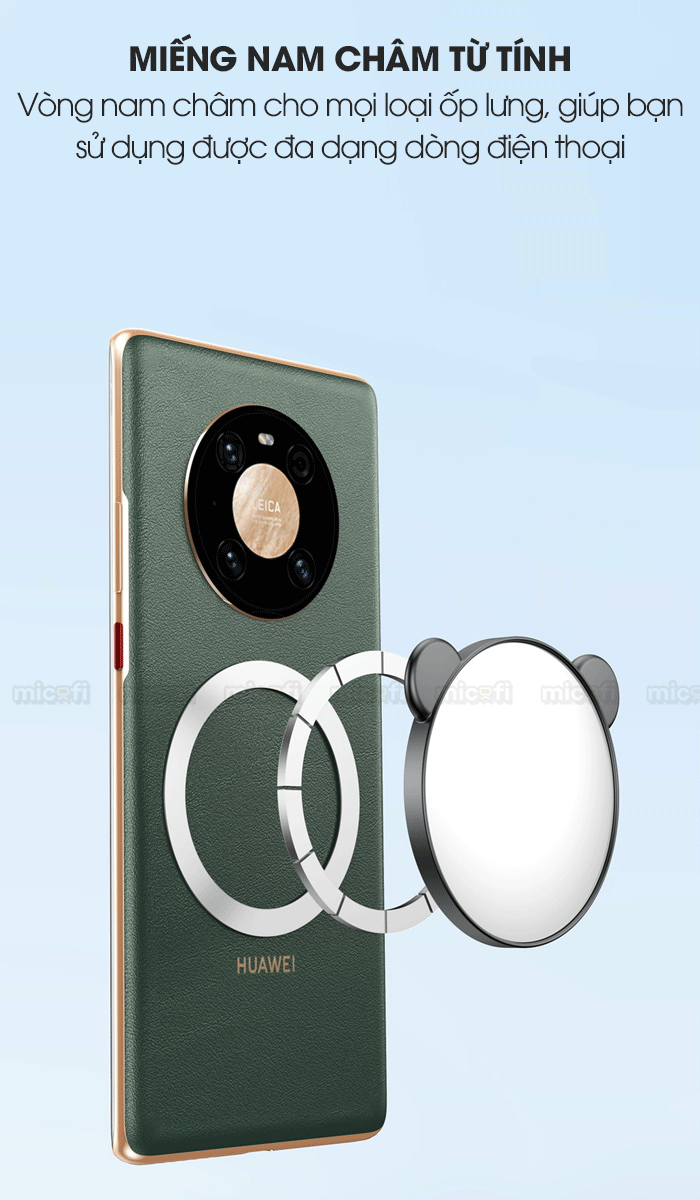 Đối với gương selfie dạng nam châm: Sử dụng với ốp lưng từ tính hoặc dán vòng từ tính được tặng kèm lên ốp lưng